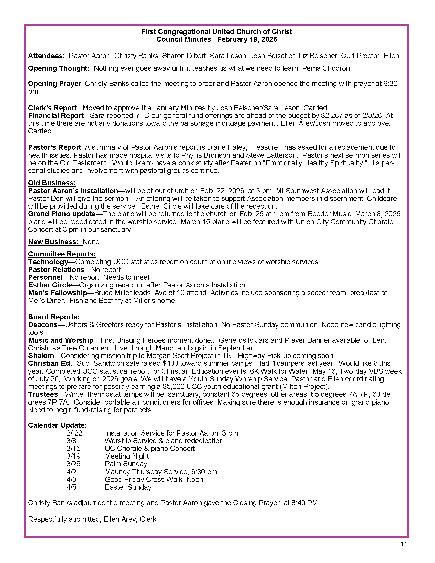 February Chimes 2026